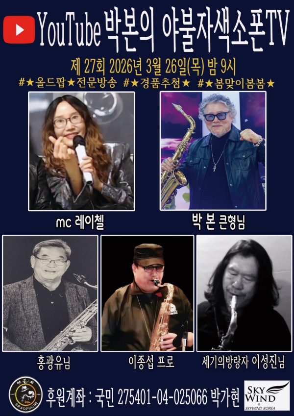 공지 | 제27회 YouTube 박본의 야불자색소폰TV 방송 페이지 정보 작성자 최고관리자 쪽지보내기 메일보내기 자기소개 아이디로 검색 전체게시물 쪽지보내기 메일보내기 자기소개 아이디로 검색 전체게시물 작성일26-03-25 16:38 조회50회 댓글0건 이전글 다음글 목록 본문 제27회 YouTube 박본의 야불자색소폰TV 회원 여러분들의 많은 시청과 응원 부탁드립니다. 댓글목록 등록된 댓글이 없습니다. 이전글 다음글 목록